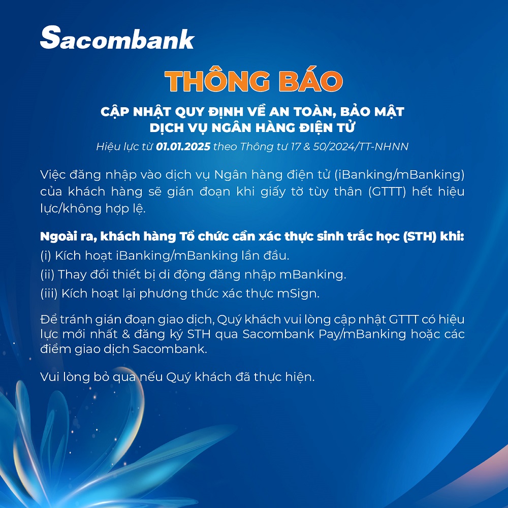 Sacombank vừa được Tạp chí Nhịp cầu đầu tư bình chọn vào Top 50 Doanh nghiệp phát triển bền vững tiêu biểu Việt Nam 2025 (Top 50 CSA), với Hạng mục Quản trị Doanh nghiệp xuất sắc. Đây là năm thứ 4 liên tiếp Sacombank nhận được giải thưởng này, một lần nữa khẳng định vị thế dẫn dầu và bền vững trong suốt quá trình hoạt động và tái cơ cấu.